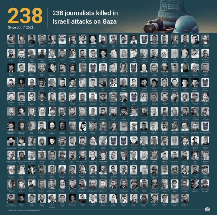 ( Sri Lanka Brief/ 14 August 2025) ඊශ්රායලය ගාසා නගරයට එල්ල කළ ප්රහාරයකින් අල්ජසීරා පුවත් සේවයට වාර්තා සපයන ජනමාධ්යවේදීන් පස්දෙනෙකු බිහිසුණු ලෙස මරා දමා තිබේ. ලෝ ප්රකට වාර්තාකරු අනාස් අල් ෂරීෆ්ද ඒ අතර වේ. ඔහු ඇතුළු මාධ්යවේදීන් පිරිස ඝාතනය කර ඇත්තේ අල් සිෆා රෝහල අසළ කුඩාරමක රැඳී සිටියදී ඉලක්ක ගත ඩ්රෝන ප්රහාරයකිනි. ඒ අනුව පෙනී යන්නේ මෙය සැළසුම් සහගත දුෂ්ට ප්රහාරයක් බවයි.