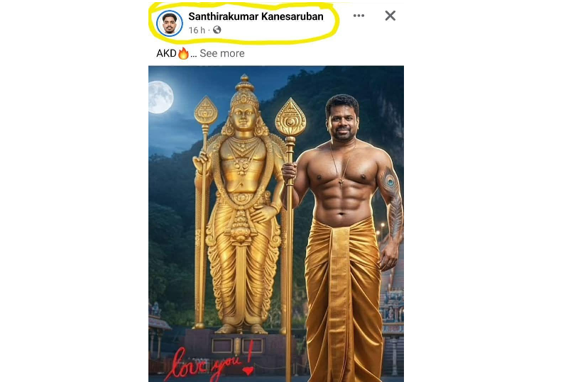 ජනාධිපති AKD මුරුගන් දෙවියන්ට සමාන කරමින් ජවිපෙ මන්ත්රීවරයෙකු කළ සමාජ මාධ්ය සටහනක් යාපනයේ ආන්දා්ලනයක් ඇති කරයි.