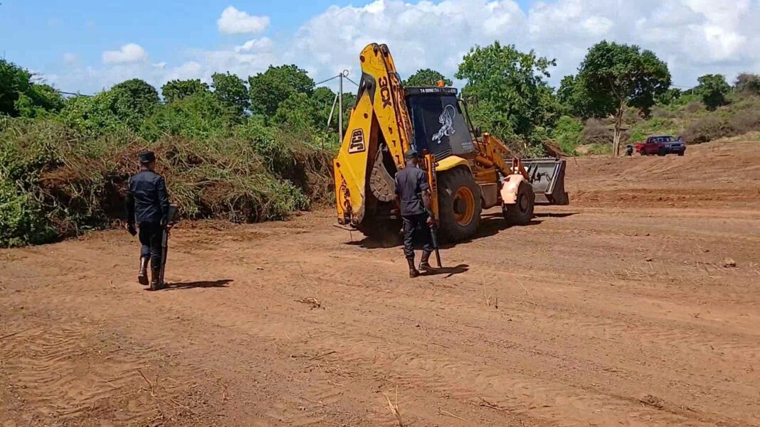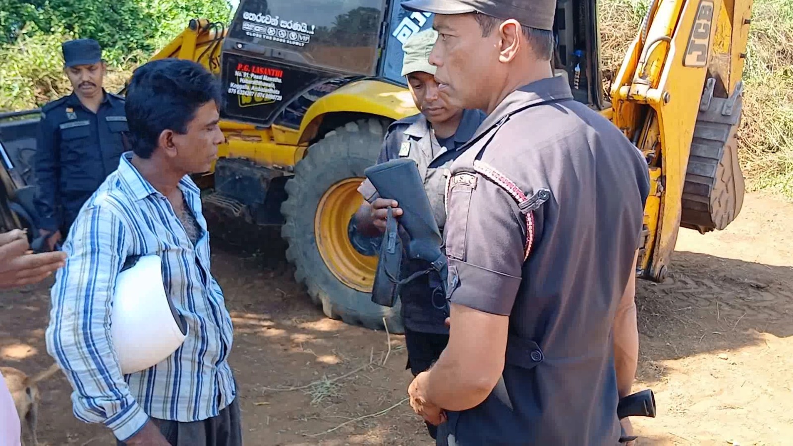 ඡාායරූපය: මහවැලි ආරක්ෂක නිලධාරීන් බැකෝ යන්ත්රය රැගෙන යන අයුරු